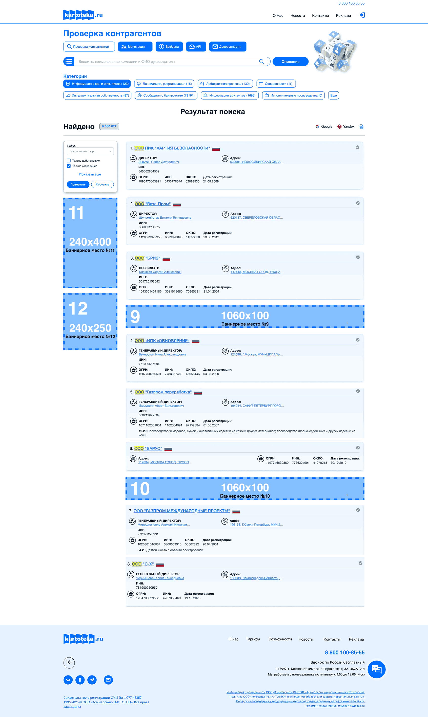 Баннер на сайте kartoteka.ru